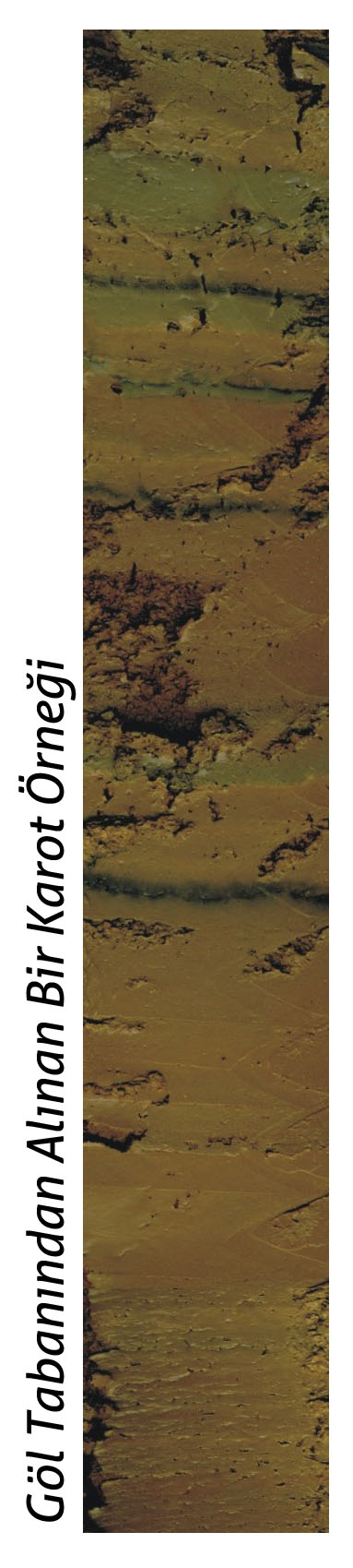 İlk çalışmayla gölün ortasıdaki bir sondajla göl tabanından 2 m kalınlığında çamur (karot) çıkarıldı. Karot, farklı renk ve dokuda (çoğunlukla kahverengi, bazen koyu gri ve yeşil) kalın ve ince katmanlardan oluşuyor (alttaki çizimde en soldaki sütun). Bu karottan sıkça alınan örnekler üzerinde kimyasal ve biyolojik analizler yapıldı, sedimanların yaşı belirlendi. Kimyasal analizler bize, göl suyunun geçmişteki tuzluluk değişimlerini gösterebiliyor. Uzmanların çamurlar içinden ayıkladığı polenler eskiden göl çevresindeki bitkilerin türü ve bolluğunu yansıtıyor. Küçük su böceklerinin (ostrakod) ve su yosunları (diyatom) suyun derinliği ve tuzluluğu ile yakından ilgili. Sonuç olarak bunların hepsi eski iklimler için birer gösterge niteliğinde.