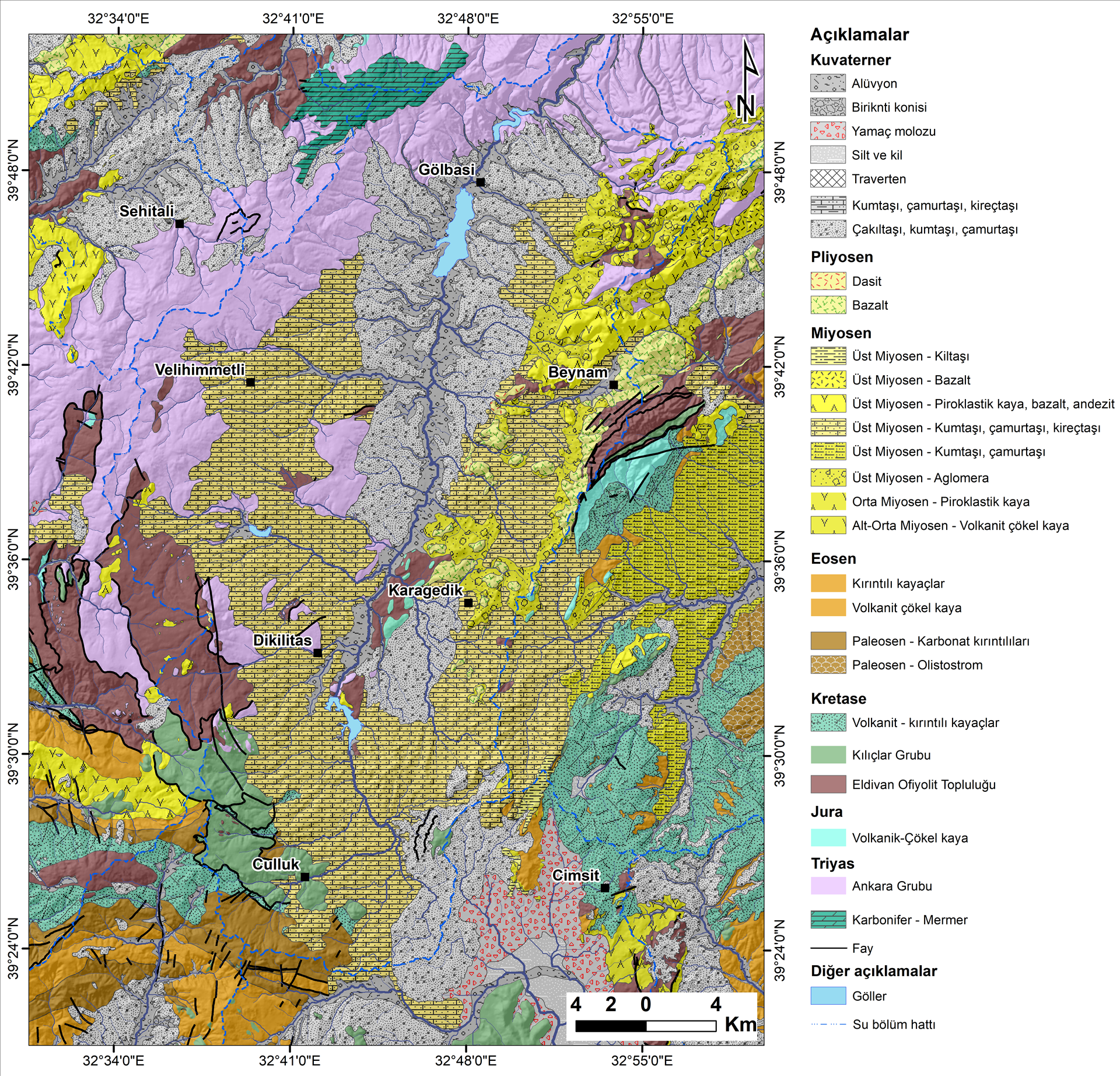 Gölbaşı civarı Kuvaterner zamanın başlarında (2.5 milyon yıl önce) bugünkü tekne görünümünü almaya başlamıştır. Bu zamanda kabaca K-G doğrultusunda uzanan 35-40 km uzunlukta bir fay zonu, Gölbaşı-Karagedik hattının doğusu boyunca gelişmiştir. Yaylabağ Fayı adını verdiğimiz bu kırık hattı, Miyosen yaşlı volkanik ve sedimanter kayaçları Kuvaterner kayaçlarından ayırır. Üzerindeki verev hareket yüzünden Kuvaterner yaşlı akarsu çökelleri 80 kadar eğimlenmiştir. Bu çökeller bazı faylar tarafından da kesilmiştir (Şekil 3).